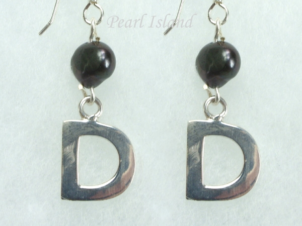 Personalised Black Baroque Pearl Earrings with One Pearl - Beautiful baroque pearls. These high lustre pearl earrings with initials look attractive and special.