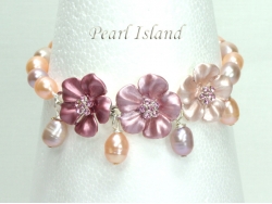 Petite Lavender Peach Oval Freshwater Pearl Bracelet with Flowers - Oval pearls in a beautiful bracelet. For that subtle look.