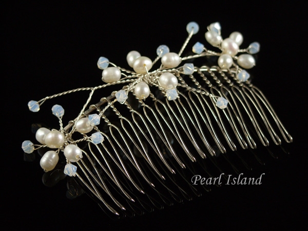 Stylish Freshwater Pearl Wedding Hair Comb (single) - This gorgeous Hair Comb is handmade with finest freshwater pearls and bicone white opal Swarovski crystals. It looks pretty and stylish.