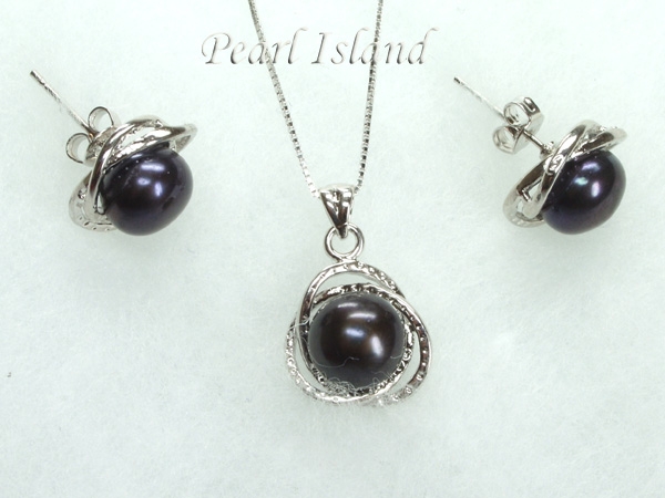 Peacock Round Pearl Stylish Pendant and Earring Set look elegant. They are selected from fine Chinese Freshwater Pearls.