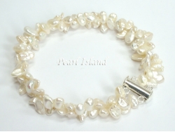 Princess 2-Row / 2-Strand Freshwater Ivory Keshi Pearl Bracelet 5-7mm - Keshi pearls are rarely found, which have cornflake shapes with high lustre and have light natural blemishes. Absolutely stunning.