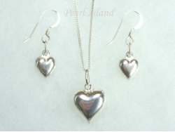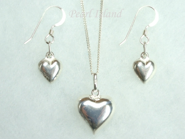 Sterling Silver Puffed Heart Pendant & Earring Set - This set of quality sterling silver 3-D puffed heart pendant and earrings looks absolutely stunning.