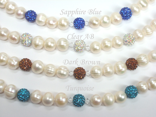 Matching Necklace:  Dallas Collection White Circlet Pearl & Crystal Ball Necklace with T-bar Clasp